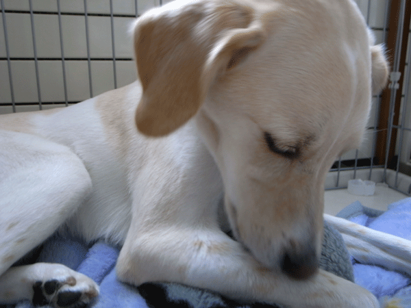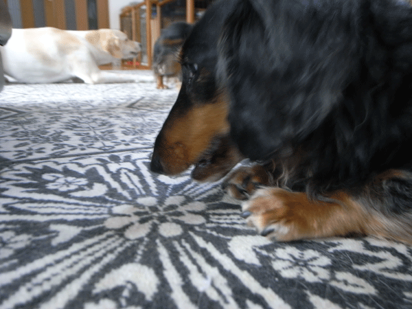 ワンコ特有のだらだら感。寝ぼけているのか、お腹がすいて動けないのか、甘えたりないのか。どちらなんでしょうか。