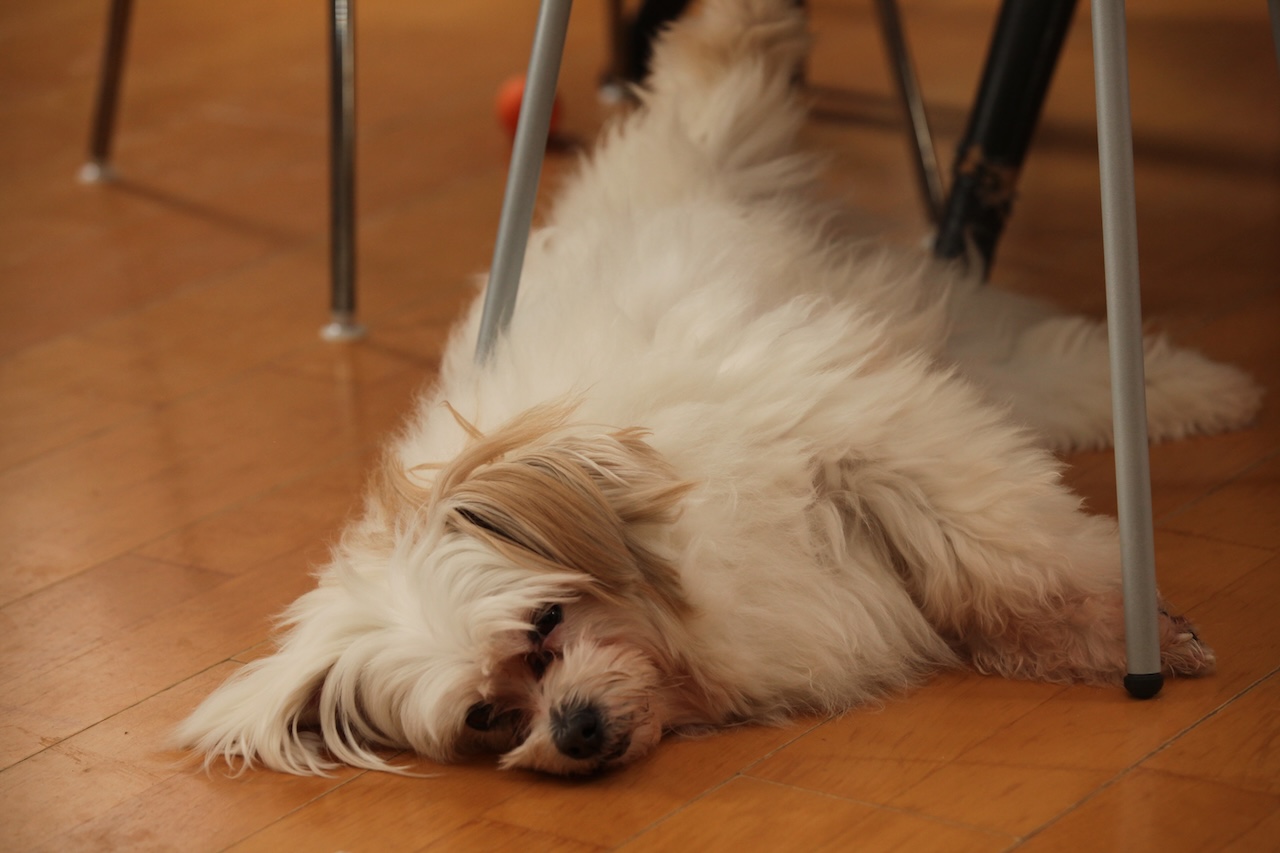 フーちゃんはそのフワフワの毛で部屋の床のホコリをモップのようにお掃除しているのです。なので夕方にはブラッシングで綺麗にしてあげてますね。そろそろ床屋さんにも行かなくちゃね。今日の旭川は雪です。これから荒れそうですね。